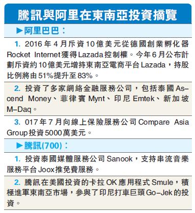 光大控股(165)執行董事兼首席執行官陳爽接受本報訪問時分享,包括阿里巴巴、騰訊在內的內地科技巨頭正紛紛前往東南亞布局。阿里巴巴集團已經在東盟市場投入了大量資金,也曾入股新加坡電商公司Lazada Group SA,該公司是印尼、馬來西亞、菲律賓、新加坡、泰國與越南等東盟國家的重要電商平台。