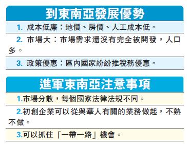 「東南亞市場大,本港企業將市場放置到東南,發展會很快。反而,如果本港企業到內地拓展業務,競爭會非常激烈。同時在面對東南亞不同的文化與語言,香港公司都能夠很快適應。」楊全盛說。