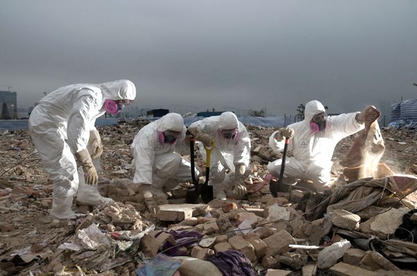 警察搜查隊於2010年馬頭圍塌樓事件協助受影響居民在瓦礫中搜尋財物。圖片由搜查隊提供