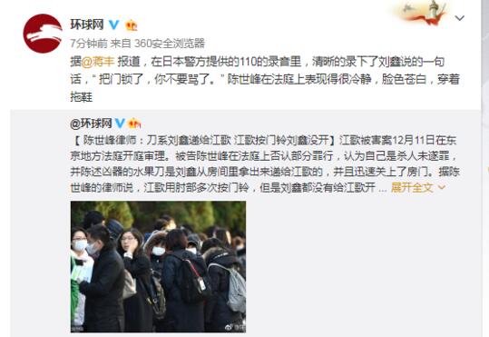 2016年11月3日凌晨,中国留学生江歌在日本中野家中遇害,作为江歌闺蜜,刘鑫就在一门之隔,而持刀杀人的正是刘鑫前男友陈世峰。
