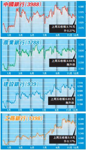 李聲揚又指,四大內銀的盈利能力較中小型內銀為佳,皆因前者有更大的息差優勢,而且中小型內銀會出現「搶貸款」的情況,變相增加存款成本,當中較看好農行(1288)及中行,農行以往是不良貸款問題最嚴重的銀行,但今年實現「雙降」,反映其信貸質素提升。中行雖然盈利能力一般,但勝在夠平,股息率較高,以上周五收市價3.76元計算,股息率達5.27%,比工行及建行吸引,而且子公司中銀香港(2388)業績不俗,投資者不妨留意。