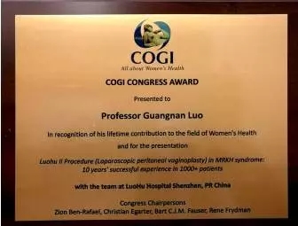 強調醫學爭鳴是COGI大會的特色,在陰道成形術專場會議上,圍繞陰道成形術不同手術方法孰優孰劣的話題,主辦方邀請了來自意大利、希臘、俄羅斯及中國的四個著名團隊同場“競技”:來自意大利的團隊介紹組織工程陰道成形,來自希臘的團隊介紹大陰唇陰道成形術,來自俄羅斯的團隊的主講人是Leila Adamyan教授,她是俄羅斯科學院院士,俄羅斯國家婦產與圍產醫學研究中心的副主任,普京總統的好友,她在陰道成形術方面也有很深的造詣,碩果累累,意想不到的是Adamyan教授已經知道羅湖術式,在她的PPT中特意提到中國人的羅湖術式陰道成形術。鑒於羅光楠教授一生在女性健康所做的貢獻以及為MRKH綜合征患者完成超過1000例陰道成形術,大會主席Zion教授代表大會授予羅教授及其團隊COGI大會獎,“羅湖術式”走向世界獲得豐碩成果。與此同時,經大會評選,羅湖醫院潘宏信醫生獲得了大會頒發的“青年科學家獎”,在開幕當天舉行的頒獎儀式上,COGI主席Zion教授及Christian Egarter教授親自為其頒獎。