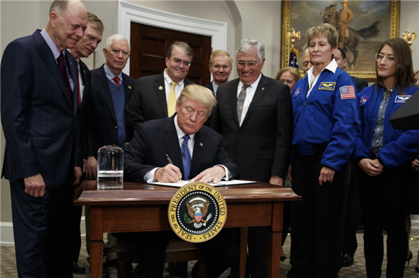 特朗普當天在白宮舉行的簽署儀式上表示,美國不僅要在月球上插旗並留下腳印,還要為將來的載人火星任務奠定基礎,也許將來還會前往火星之外的世界。