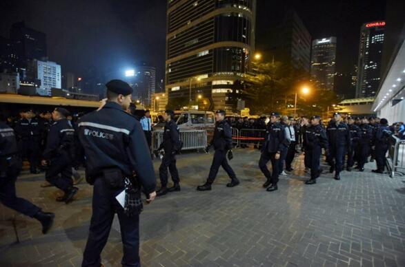午夜後仍有三、四十名示威者拒绝离开,警员到凌晨约12时45分进入示威区,几名警员合力抬走一名示威者。其中一名女示威者躺下,报称不适,救护员到场为她检查,她事後拒绝送院。