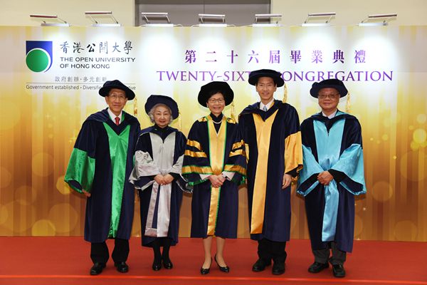 【香港商報网訊】記者馮仁樂報道:香港公開大學(公大)昨日舉行第26屆畢業典禮,並由行政長官暨公大校監林鄭月娥頒授榮譽博士學位予4位知名傑出人士,包括梁愛詩、陳智思、方正及李焯芬。