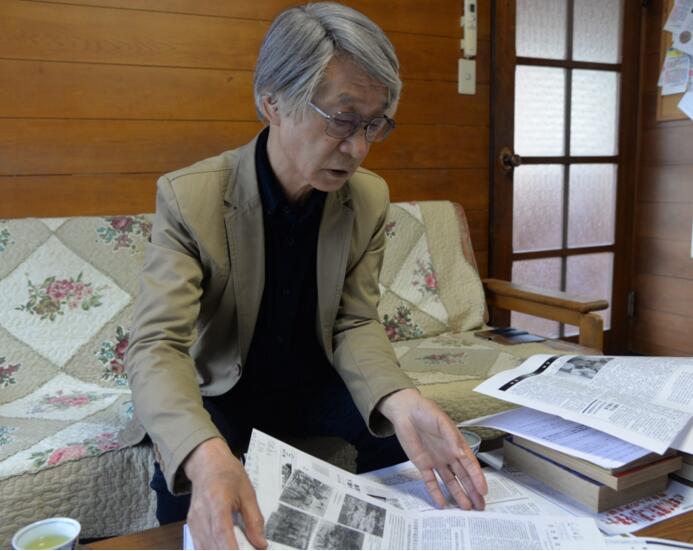 2017年11月25日,日军侵华战争历史学者森正孝在日本静冈接受新华社记者专访,对右翼否认南京大屠杀的论调进行一一驳斥。王可佳 摄