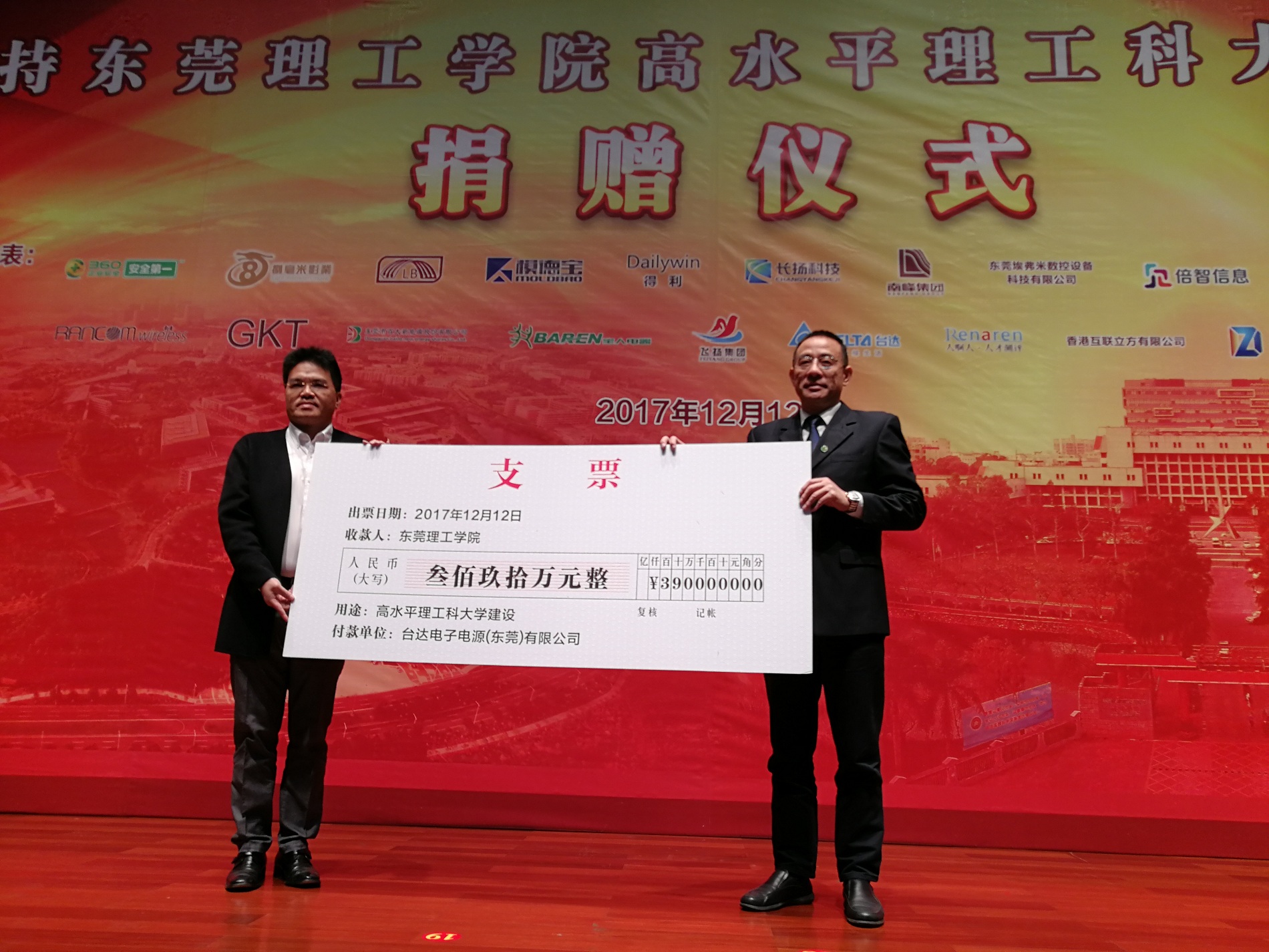【香港商报网讯】记者冷运军报道:12日,2017主流媒体看“莞工”新闻发布会暨“2017支持东莞理工学院高水平理工科大学建设”捐赠仪式在东莞理工学院松山湖校区举行。捐赠仪式上,37家企业向东莞理工学院共计捐赠3.2亿元人民币,捐赠善款将用于建设高水平理工科大学。