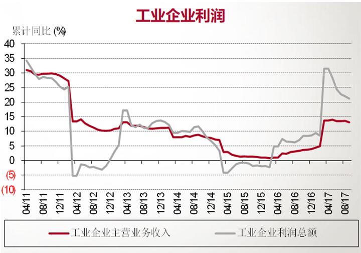 從這個意義來講,中國宏觀經濟全部問題就是什么時候能摘掉吊瓶,不再依賴宏觀調控來遏制經濟下行。我們認為,從2016年開始,中國宏觀經濟出現了穩定的勢頭,2017年這個勢頭得到鞏固。截至今年第三季度,中國經濟已連續八個季度GDP增長維持6.7-6.9%之間。從未來看,雖然不會有很大的反彈,但是進一步下滑的可能性也不大。與此同時,2016年的9月份和10月份工業生產價格指數由負增長轉為正增長,這意味著企業的銷售收入增長。企業銷售收入增長使企業的現金流轉好,企業付息能力提高,杠桿就有可能穩住。
