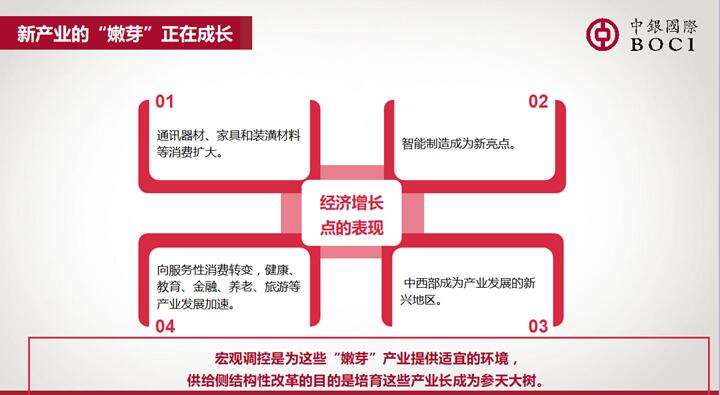 宏觀調控的作用也是為嫩芽產業遮風避雨。什么是供給側改革?本質是創造環境,改良土壤,改善環境來促使嫩芽快快長大。如果嫩芽可以長成參天大樹,中國經濟就可以持續發展。預計在未來三年中,中國新經濟就是處在嫩芽發育的階段。