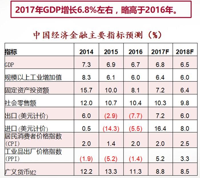 從今年情況看,我們認為今年中國GDP增長在6.8左右,略高于2016年。