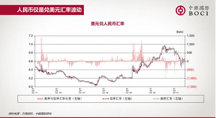 當前人民幣匯率波動是一個很特殊的機制。由于人民幣國際化,離岸市場影響在岸市場。因為離岸市場的存在,出現兩個匯率和兩個利率,于是利率在引導匯率。
