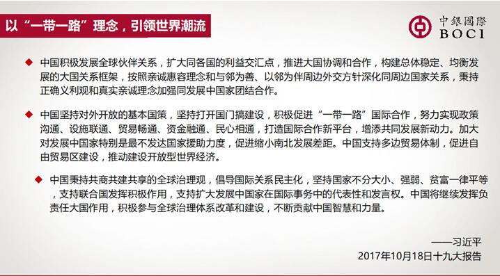 中國走到世界舞臺的中央,不僅意味著中國經濟在世界地位的提高,同時意味著中國應對世界承擔更多責任,尤其在去全球化的逆風當口,中國應旗幟鮮明地捍衛全球化。十九大報告中第十二部分對此已做出深刻分析,提出了中國方案“共贏,共建,共享。打造人類命運共同體。”對中國而言就是建立開放型經濟新體制以全新的姿態擁抱世界。