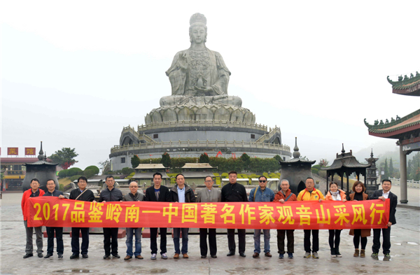 【香港商報网訊】記者程功明、童越、林麗青報道:第八屆「品鑒嶺南」中國著名作家采風團14日走進廣東觀音山國家森林公園采風,探秘「南天聖地,百粵秘境」。莊嚴肅穆的觀音聖像、綠意盎然的耀佛叢林、千奇百怪的古樹,廣東觀音山國家森林公園獨特的自然景觀和深厚的人文內涵,讓采風團作家神清氣爽。采風團團長、中國作協名譽副主席蔣子龍表示,在觀音山感到很親切,「觀音從山頂走向人間,這兒是人世的觀音,百姓的觀音。」