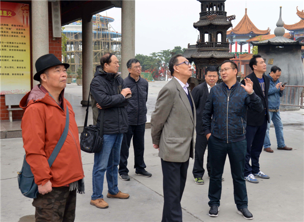 采风团作家们在观音山广场听取有关观音山的介绍。
