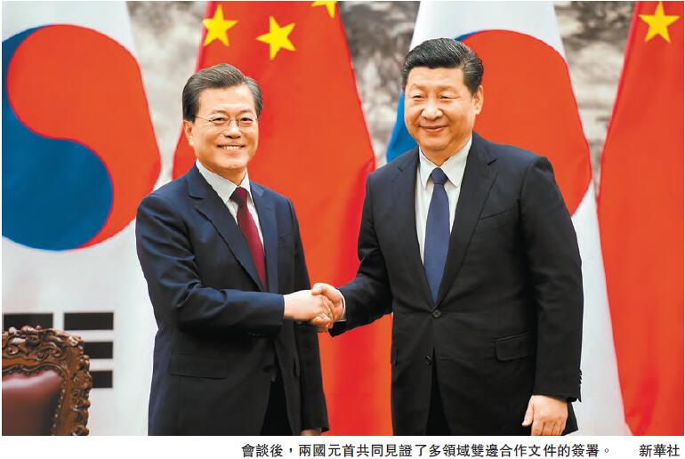 【香港商報网訊】應中國國家主席習近平邀請,韓國總統文在寅於12月13日至16日對中國進行國事訪問。此次訪問是文在寅就任總統后的首次訪華。昨天下午,習近平同文在寅舉行會談,習近平重申了中方在「薩德」問題上的立場,希望韓方繼續妥善處理這一問題,并希望雙方把握互利共贏的合作宗旨,推動中韓戰略合作夥伴關系始終健康穩定地走在正確發展軌道上。