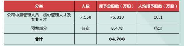 根據授權股票總量及人數,此次股權激勵的人均可獲得10.1萬股。外界有猜測,若按照不同職級劃分,一些人員存在一夜造富的可能。不過,從細則來看,這個可能性已很小。