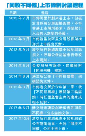 2017年6月港交所建議設創新板容許同股不同權,公布諮詢文件。