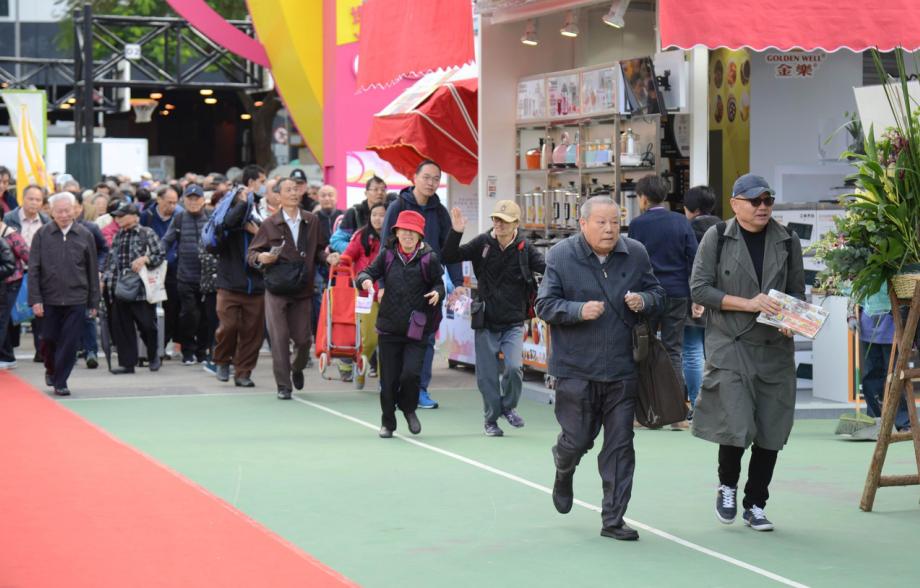 開幕一刻,不少市民急急奔去攤檔,當中不乏長者。 記者 崔俊良攝