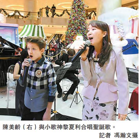 【香港商報网訊】記者周偉立報道:聖誕節少不了一首又一首的聖誕名曲。香港史上首位獲邀加入維也納兒童合唱團的小歌神Harry Nicholls(黎夏利),昨日聯同香港城市室樂團及著名歌手及教育學博士陳美齡,應圓方邀請舉行迷你聖誕音樂會,更即場與黎夏利合唱聖誕名曲《Jingle Bells》,掀起全場高潮。