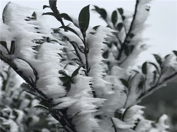 16日,广东第一场雪临幸了清远,殊不知,这场雪,罗浮山也获得了恩宠。飞云顶处的树枝、山林全部结冰了。神奇的是,分水坳处温度只有2.6℃,并没有出现冰挂现象。但在分水坳驿站往上100米处,开始出现了冰挂雾凇美景。