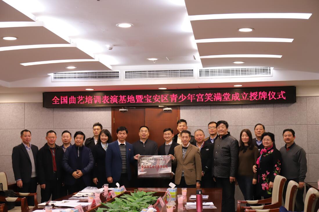 【香港商报网讯】记者王娜报道:全国首家曲艺培训表演基地落户宝安成为现实!12月18日下午, “全国曲艺培训表演基地”暨宝安区青少年宫笑满堂成立授牌仪式于宝安区委区政府举行,中国曲协副主席、四川文联副主席、四川曲协主席张旭东,中国曲协分党组成员、副秘书长黄群,中国曲协研究部干部张小卫,广东省曲协名誉主席杨子春,广东省曲协专职副主席宋枭楠,广东省曲协副主席史琳,深圳市文联专职副主席林亮,深圳市曲协主席吴金富,宝安区委常委、宣传部部长黄盛华,宝安区委宣传部常务副部长王曦出席了会议。