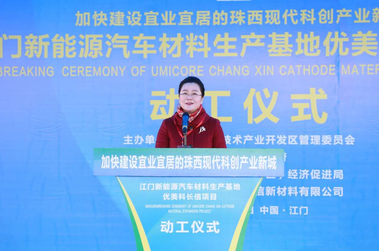 【香港商报网讯】记者盛芳龄报道:12月18日,江门高新区(江海区)在项目所在地块举行新能源汽车锂电池材料生产基地优美科长信项目动工仪式。省经信委副主任吴育光;江门市市长刘毅;优美科集团首席执行官Marc Grynberg;比利时驻广州总领事馆领事高卓飞;江门市副市长梁许赞、蔡德威;彭章瑞、汤惠红、周婉玲、何腾等区四套班子领导;优美科集团有关高层冯初贤、Frank Streignart、陆军东等参加项目动工仪式。