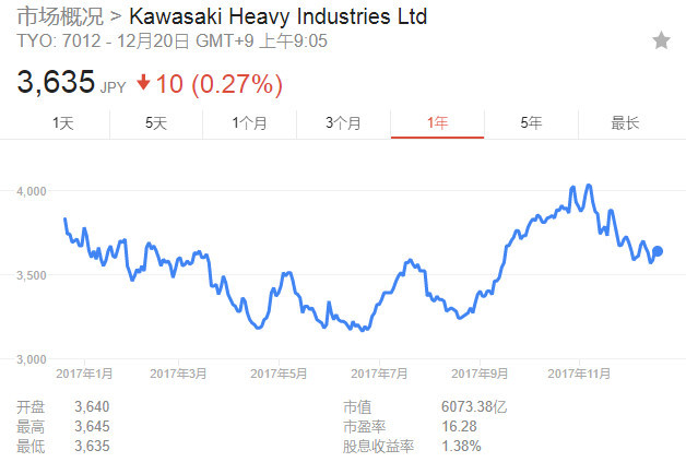 目前这三家公司股价波动不大,川崎重工小幅下跌0.27%,新日铁和住友金属上涨0.3%,三菱电机下跌0.16%。