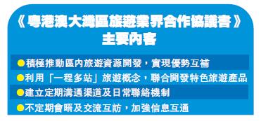 《協議書》內容包括:積極推動區內旅游資源開發,實現優勢互補;利用一程多站旅游概念,聯合開發特色旅游產品,并積極展開旅游宣傳工作;建立定期溝通渠道及日常聯絡機制,商討合作計劃和交流項目;及不定期會晤及交流互訪,加強信息互通。