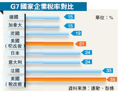 根據該法案,美國聯邦企業所得稅率將從現在的35%降至21%;對美國企業留存海外的利潤進行一次性徵稅,其中現金利潤的稅率為15.5%;推行「屬地制」徵稅原則,即未來美國企業的海外利潤將只需在利潤產生的國家交稅,而無需向美國政府交稅。