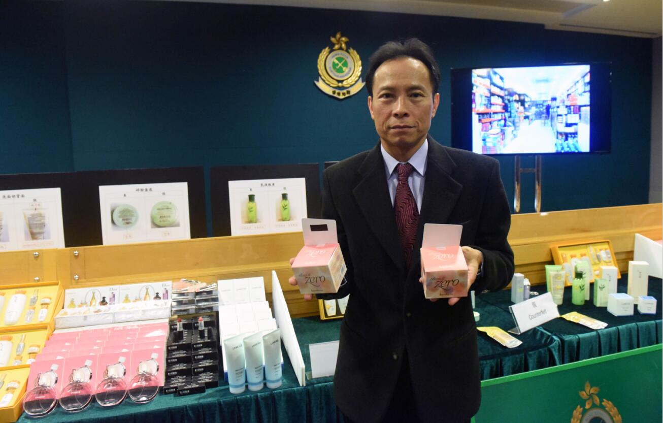 海關早前接獲韓國化妝品牌商標持有人及本地市民舉報,指市面有零售店舖售賣冒牌貨品,在商標持有人協助及經深入調查後,於近2日鎖定油麻地、佐敦及旺角的9間零售店舖,關員先後進行搜查,共檢獲500多件不同牌子的懷疑冒牌化妝品及護膚品,當中以韓國品牌為主,包括「雪花秀」、「innisfree」、「LANEIGE」等知名品牌,當中有卸妝水、碎粉、粉底、面膜及精華液等。行動中,共拘捕9男1女,包括2名店東及8名店員,年齡介乎25歲至43歲。隨後,海關根據供應網絡,搗破一個供應及分銷懷疑冒牌貨品的集團,在其位於青衣的儲存倉庫檢獲4800件冒牌化妝品及護膚品,估計市值約60萬元,並拘捕31歲集團男主腦。