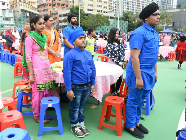 参与活动的少数族裔人士,在奏中国国歌时肃立以表尊重。记者 冯瀚文 摄