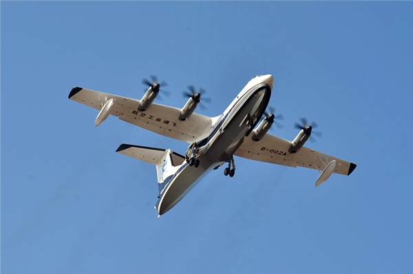 AG600飞机按照“水陆两栖、一机多型、系列发展”的设计思路,在满足森林灭火和水上救援要求的同时,兼顾改装成海洋环境监测和保护等用途的可能性和灵活性。该机采用悬臂上单翼、前三点可收放式起落架、单船身水陆两栖飞机布局形式,选装4台国产涡桨发动机,最大起飞重量53.5吨,具有载重量大、航程远、续航时间长的特点。既能在陆地上起降,又能在水面上起降,可在水源与火场之间多次往返投水灭火,森林灭火、特种灭火效率高,20秒内可一次汲水12吨,单次投水救火面积可达4000余平方米;海上救援能力强,可快速响应、快速到达,可在复杂气象条件下实施救援行动,起降抗浪能力不低于2米,可一次救助50名海上遇险人员。