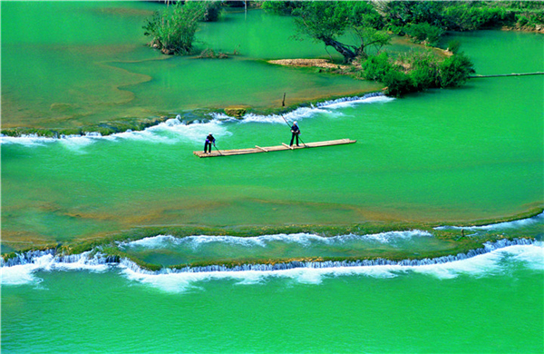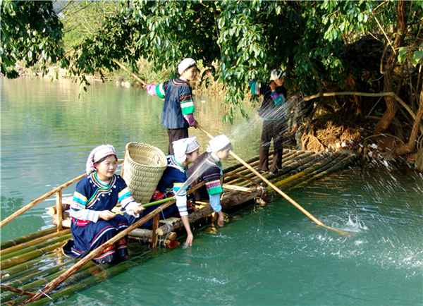 布依青年男女盛装云集河边,赛竹筏、送蛋包、泼水嬉戏、对歌求偶,仿佛一片世外桃源。