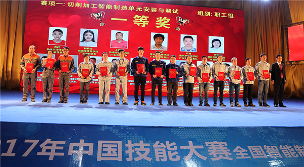 本次大赛是国家级一类大赛,大赛自12月18日开赛以来,在连续5天的比赛过程中,来自全国26个省市区和国资委系统的163支队共489名选手,统一参加了理论考试,先后分8批次参加了实操竞赛。最终,惠州市技师学院代表队荣获了职工组“切削加工智能制造单元生产与管控”项目的第一名;杭州科技职业技术学院代表队荣获了学生组“切削加工智能制造单元生产与管控”项目的第一名;珠海市技师学院代表队荣获了职工组“切削加工智能制造单元安装与调试”项目的第一名;山东技师学院代表队荣获了学生组“切削加工智能制造单元安装与调试”项目的第一名;共有20支队、60名参赛选手荣获大赛一等奖;有60支队、180名参赛选手荣获大赛二等奖;有38支队、114名参赛选手荣获优胜奖。