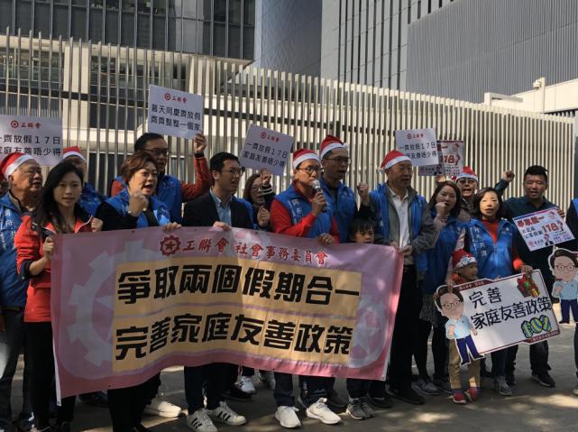 【香港商報网訊】記者馮煒強報道:工聯會約20名成員於聖誕節到政府總部請願,要求盡快統一公眾假期及法定假期至17日,以解決兩種假期制度存在不公平問題,使全港打工仔都可獲得均等的假期休息。工聯會新界東辦事處總幹事鄧家彪稱,有關情況反映職場不公平現象,部分打工仔比別人少了5天假期,造成明顯的階級劃分和歧視。