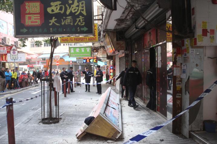 昨午1時許,上址正門外的大型招牌突然塌下,跌落行人路上,發出隆然巨響,3名南亞裔漢走避不及被擊中,分別頭、頸、手及腰受傷,附近小巴司機見狀忙代為報警,救護員接報到場,將3人分別送到伊利沙伯醫院及廣華醫院。