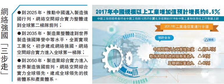 ●到2025年,推動中國邁入製造強國行列,網絡空間綜合實力整體達到全球第二梯隊前列;