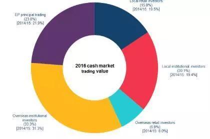 香港的机构投资者对市场的贡献,有专门的研究报告做过统计分析。在市场交易量这一项上,海外机构投资者和本地机构投资者都有增长,合计占比53.4%。而海外和本地个人投资者的占比都有下跌。这个比例是22.8%,可以说,香港股市的机构和个人结构仍然是80/20分配,和内地股市的市场结构正好相反。