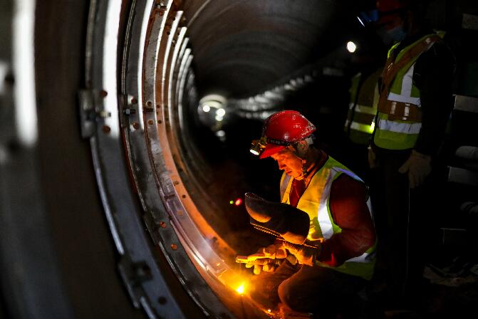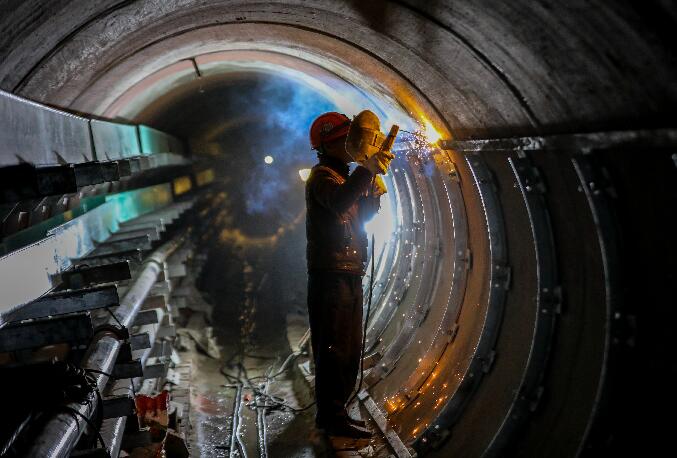 12月25日,技术工人在电力隧道内进行焊接作业。