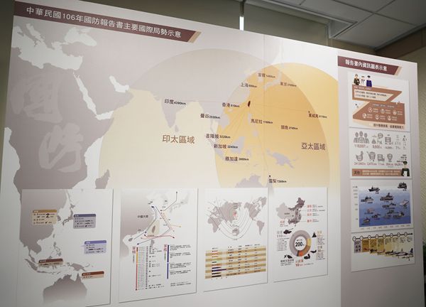 報告書也提出蔡英文上台后所謂的戰略新思維,標榜以「創新不對稱」的思維建構聯合戰力,報告還解釋了所謂的「防衛固守、重層嚇阻」戰略,并正式將「戰力防護、濱海決勝、灘岸殲敵」列為台軍建軍戰略。值得注意的是,在談到建構「不對稱戰力」時,報告中特別出示一紙示意圖,說明「重層嚇阻」的作法,其中有一項「從台灣本土發射直抵對岸」的裝備引起外界注意,而報告書中也將「發展精準打擊武器」列為首要,并提及台軍有能「自台灣本島攻擊大陸本土」的導彈武器。有分析認為,這是指尚未解密、射程達1200公里的「雄2E巡航導彈」,對此,台防務部門發言人陳中吉表示,面對大陸日益強大的軍事力量,台軍需要積極應對,圖表只是說明「重層嚇阻」的意象與理念,「但沒標上的,不代表它不存在。」陳中吉還表示,「其他如資通電軍、網絡攻防及其他先進科技,不便太過詳細說明,這是我們保命根本」。