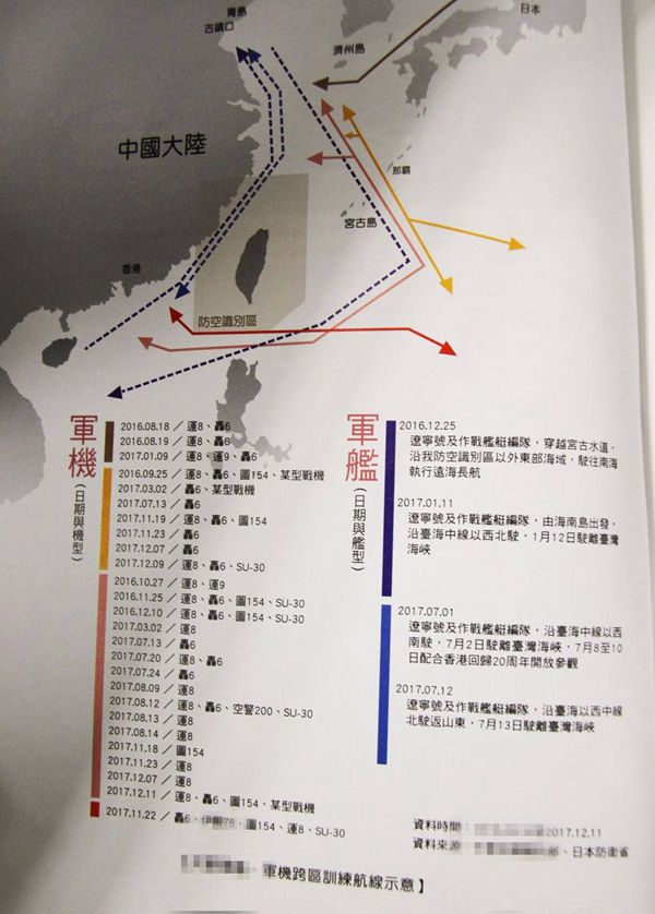 台灣昨天發布防務報告書,詳解解放軍25次繞台路線。中央社