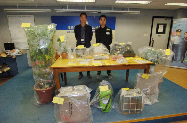 警方表示,本月20日晚上,新界南總區機動部隊在沙田大埔公路近馬料水設置路障,進行反罪惡行動,其間截查一輛形迹可疑的七人車,並在後排座位發現8公斤大麻葉及一批製毒工具,市值約200萬元,當場拘捕車上2名越南漢(37歲及57歲);案件其後交由新界南總區重案組跟進,至本月22日,探員於大埔公路近大埔滘一間兩層高洋房破獲大麻種植場,檢獲448盆種植中的大麻,約31公斤重,價值950萬元。