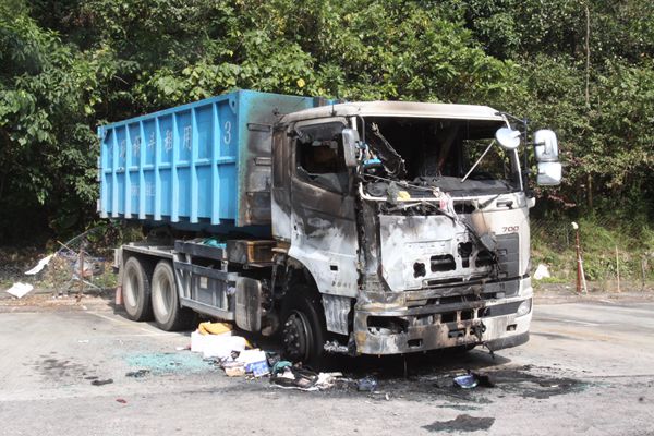 寶琳北路遭縱火的貨車。 記者 區天海攝