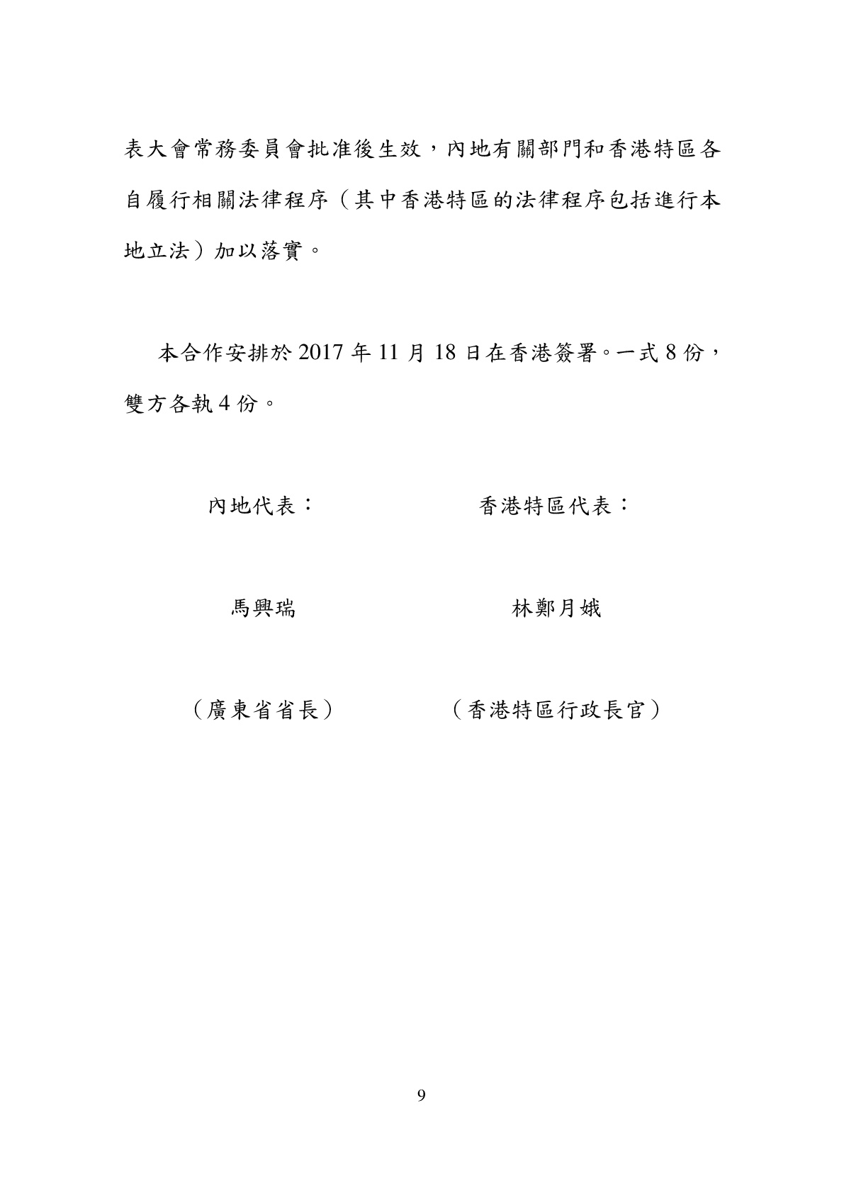 本合作安排於 2017 年 11 月 18 日在香港簽署。一式 8 份,雙方各執 4 份。