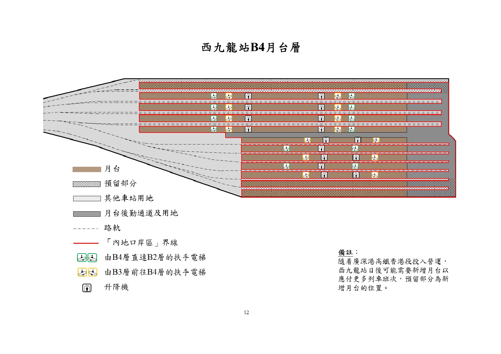 除上述納入內地口岸區範圍的場地和高鐵列車車廂,廣深港高鐵香港段的所有其他營運範圍及設施(包括石崗列車停放處、路軌及行車隧道)均不屬於內地口岸區範圍。
