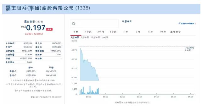 昨天,霸王集团股价暴跌30.88%至0.197港元,随后临时停牌。
