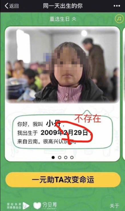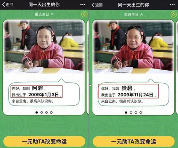 然而,很快就有网友发现至少有6个受捐学生疑似一人出现两个不同的出生日期,比如5月5日出生的受助人「阿豪」,与12月26日出生的「小豪」照片十分相似。网友们质疑,「同一年出生的你」网络募捐活动涉嫌利用虚假信息骗捐。