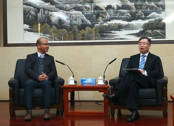 教聯會訪京團拜會港澳辦,圖為主席黃錦良與港澳辦副主任宋哲(右)。