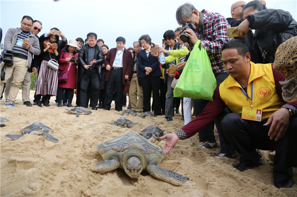 【香港商报网讯】记者卢伟、通讯员黄少卿报道:12月28日, 2017中国·惠州海龟文化旅游节暨海洋文化月活动在广东惠东海龟国家级自然保护区正式启动。全国政协委员、国家旅游局原副局长、党组副书记王志发,广东省旅游局副局长曾晓峰,惠州市政协副主席、市海洋与渔业局局长王正印,惠东县县长魏荣君,以及来自全国21省、45个城市的旅行社代表,还有香港及马来西亚的旅行商,共约500人参加本次活动。
