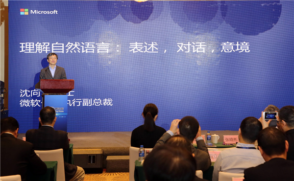 微软公司全球执行副总裁沈向洋博士在现场讲演中。